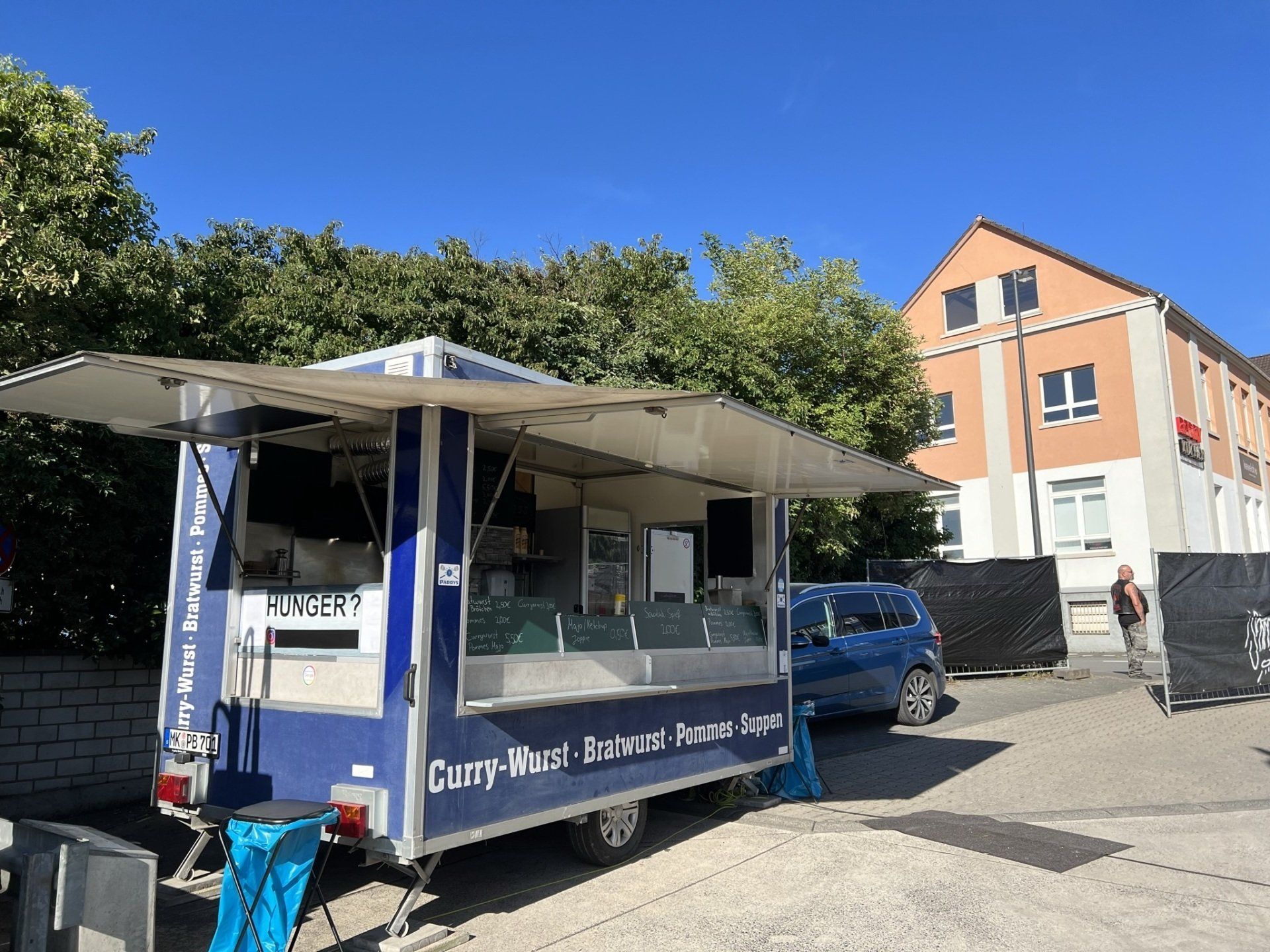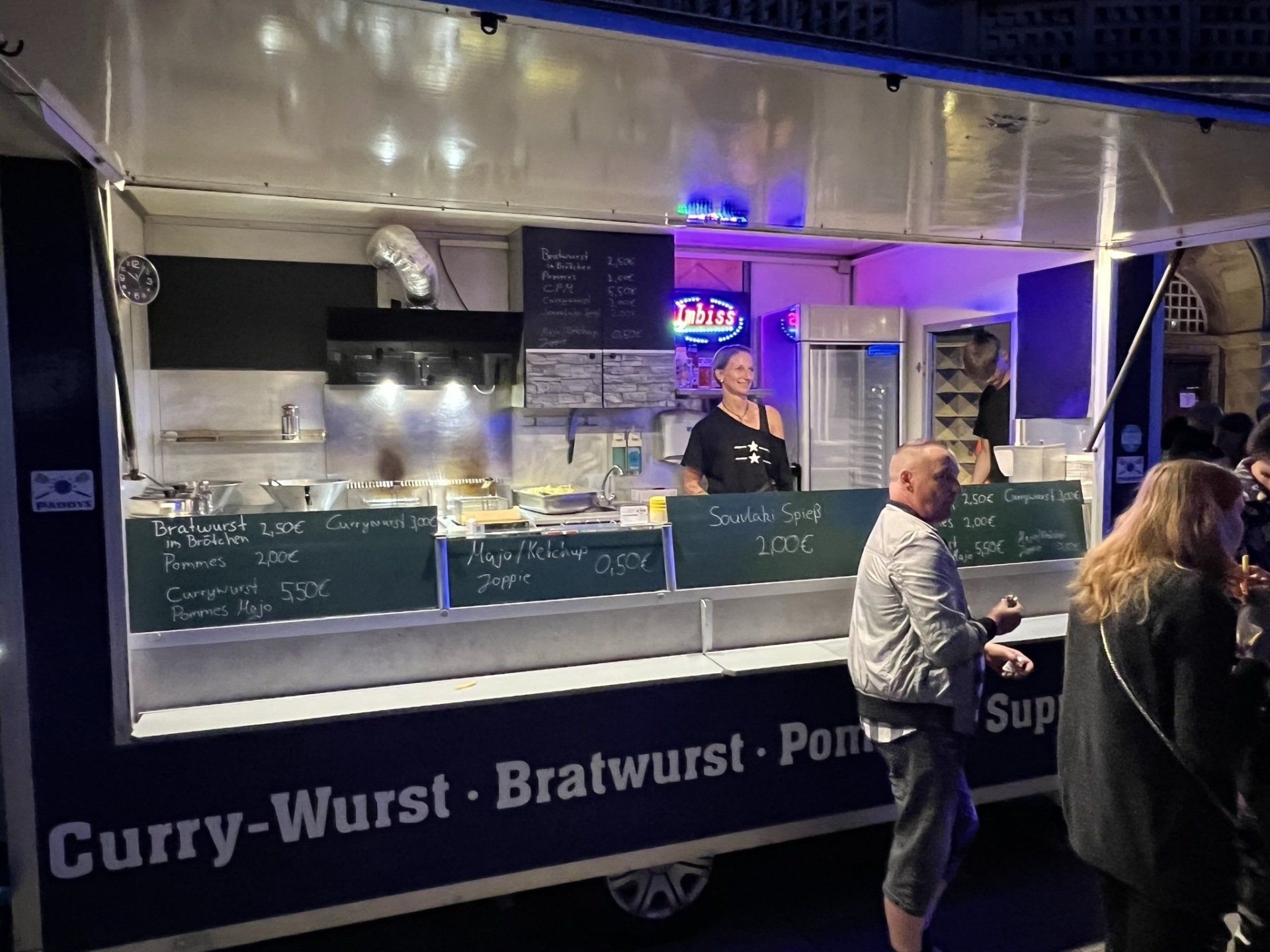 Für den Zeitraum von üblicherweise drei Stunden steht unser Imbisswagen auf eurer Veranstaltung und versorgt eure Gäste zum Pauschalpreis mit Currywurst und Pommes.